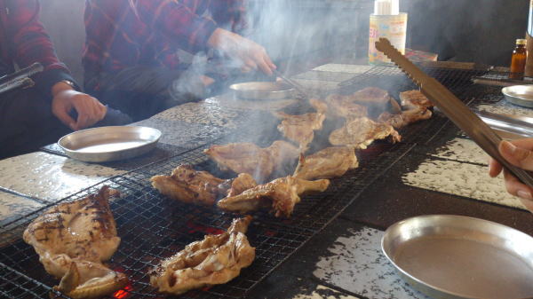 帰りは東千歳バーベキューで鳥を豪快に焼き上げ、頂きました!!